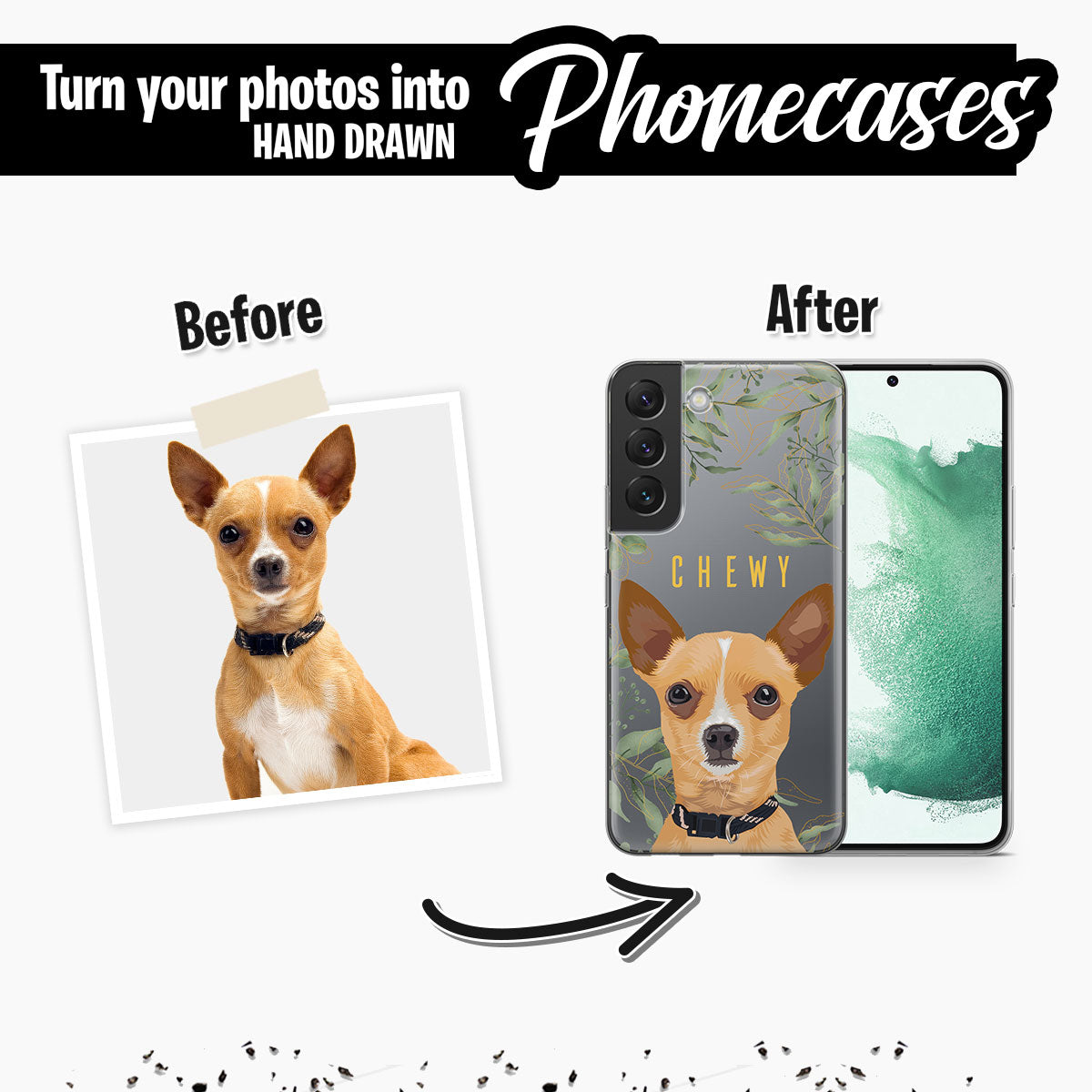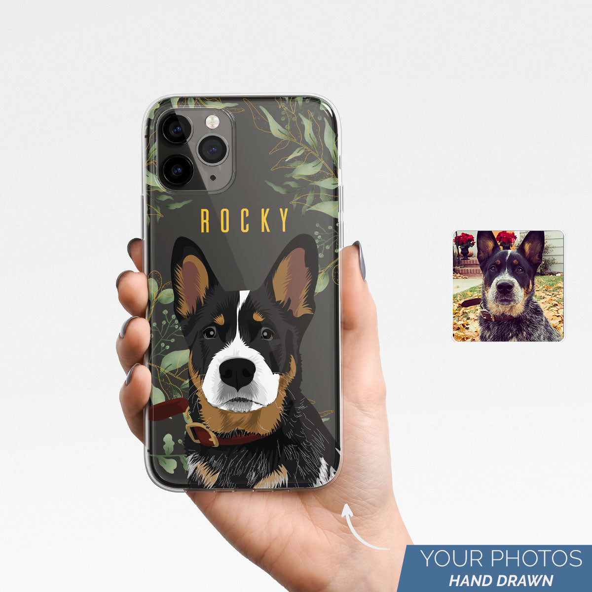 This dog photo to drawing is perfect way to show love and carry your furry friend with you. Does not matter if you have an iPhone or Samsung smartphone we will draw your pet and place it on the back of your desired phone model in the perfect spot, making a perfect phone case for daily carry.