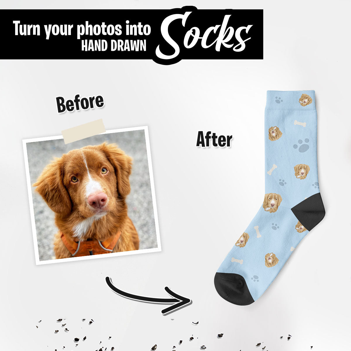 Create your own custom Personalized Hand Drawn Photo Socks.