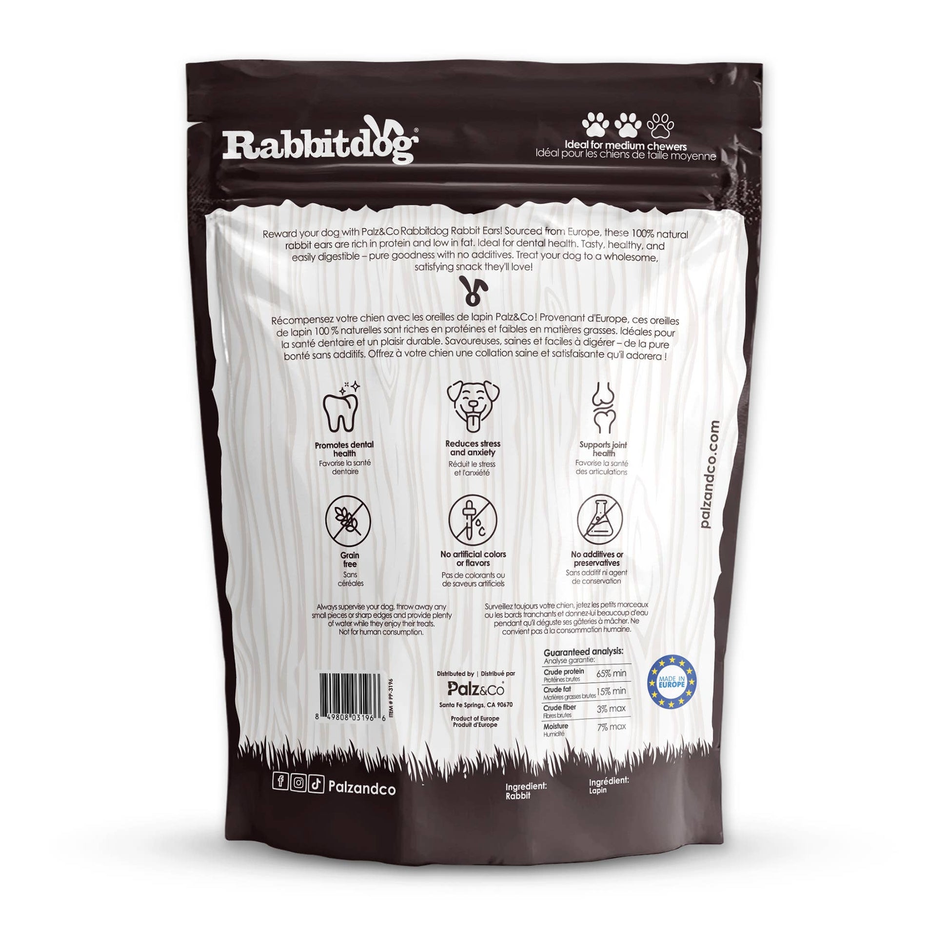 Give your dog a healthy chew they’ll love - and one that’s gentle on their stomach. Rabbitdog Rabbit Ears are hypoallergenic, single-ingredient treats made from 100% European rabbit, perfect for dogs with food sensitivities or limited-ingredient diets. Available with or without fur, these ears are a natural source of fiber to support digestion and gut health, while their firm texture helps clean teeth and massage gums for better dental hygiene. Naturally low in fat and rich in lean protein, they provide essential nutrients to support your dog’s overall wellness. Ideal for small to medium-sized dogs and moderate chewers, these satisfying treats offer a natural way to keep your pup happy, healthy, and engaged. Sold in a 15-count pack.